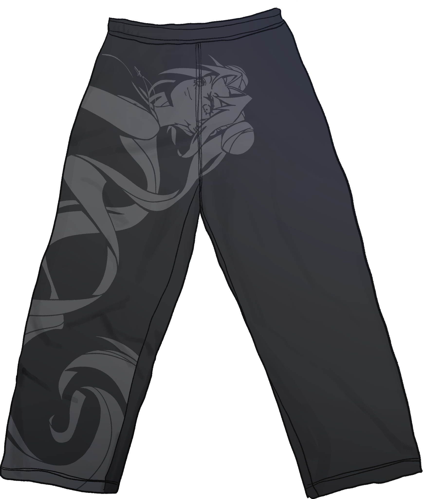With a monochromatic dark and light grey colour profile, the Murasaki Sweatpants easily complement a wide range of outfits. These sweatpants are the first to feature Murasaki, one of the main characters from ETHER’s storyline. The design exhibits Murasaki's profile covering the left and centre part of the garment and a miniature Murasaki to go along on the back pocket.
