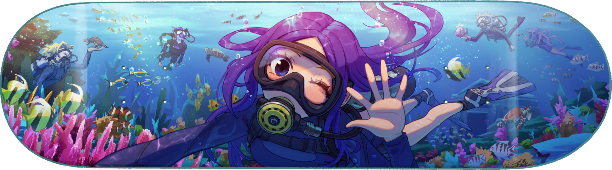 This meticulously crafted skate deck is made from the finest Canadian maple wood. The Scuba Deck serves as a collector's item, showcasing ETHER's dedication to quality and craftsmanship. The deck displays original artwork by V, portraying Hoshi and the main ETHER cast within a nautical setting.